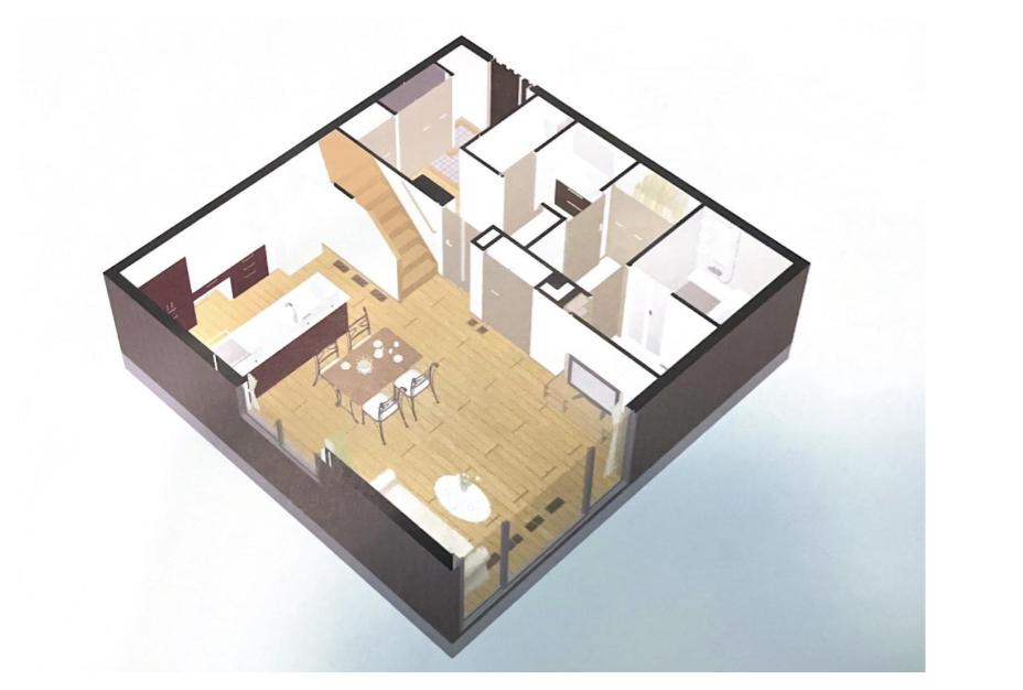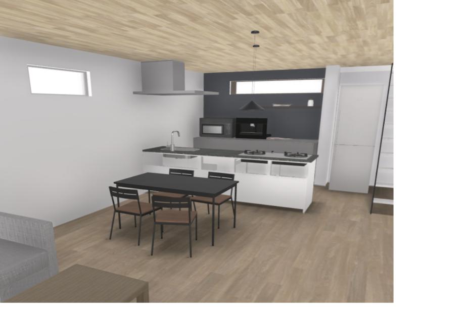 2時間ほど掛け、現在の打ち合わせの内容を反映した内装イメージを作り出した。これが中々骨が折れるし、スマホが熱くなるし大変だが、無料の範囲でも(有料会員もある)十分にイメージに近づけたものが出来上がった。それがこちら。